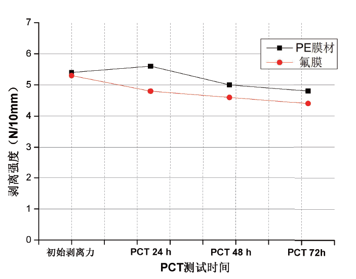 復(fù)合常規(guī)氟膜、PE膜后的性能:(上膠量:6-10g/㎡,固化條件:50℃ 2天)